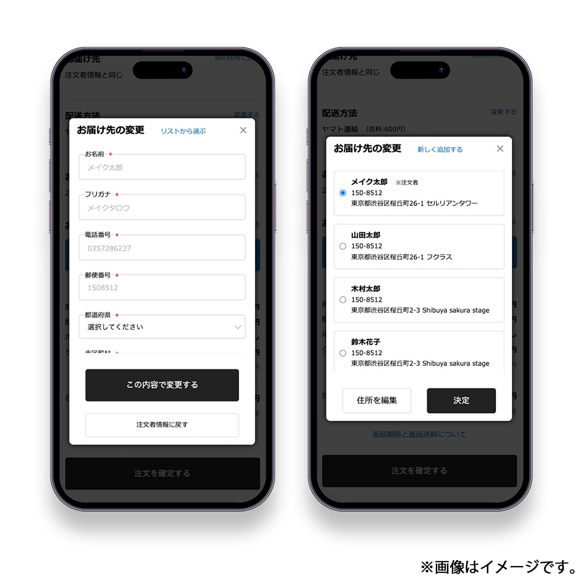 新たな会員限定マイメニュー機能として、最大50件まで登録可能な「アドレス帳」機能も実装、注文時に複数のお届け先から簡単に選択・変更できます。